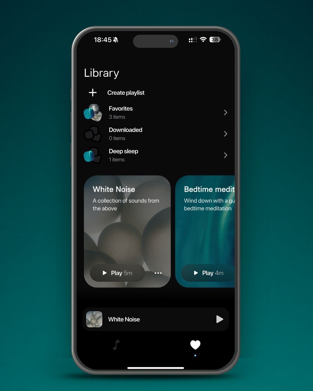 Build your perfect wind-down routine with custom playlists and favourites. Whether you need to relax, focus, or sleep - your ideal mix is ready when you are.