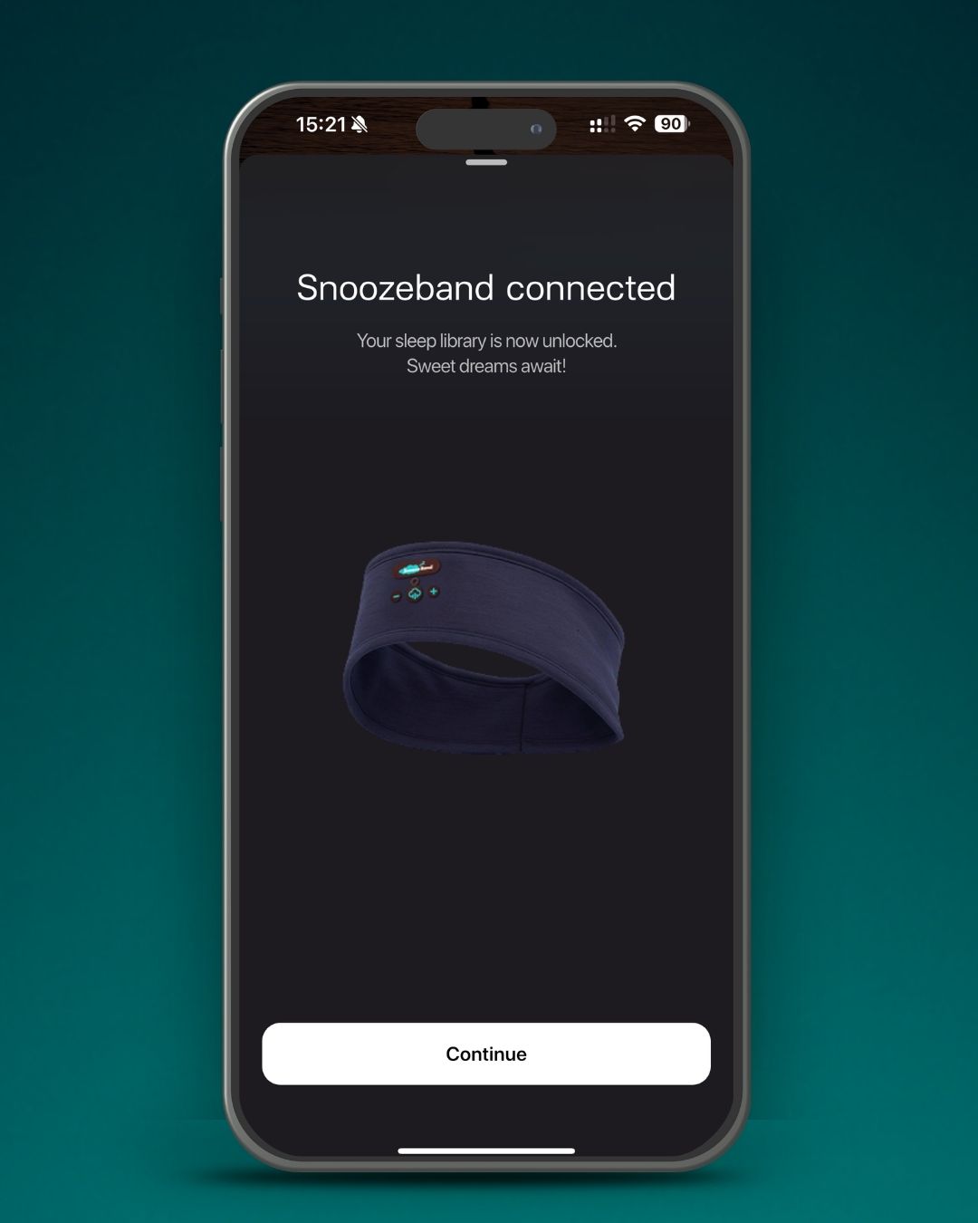Simply connect your Snoozeband to your phone via Bluetooth - the app will guide you and automatically detect your device and unlock all content.